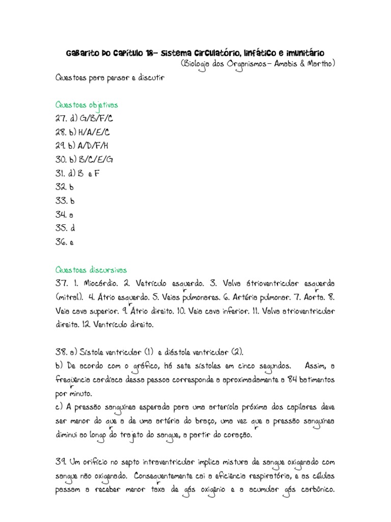 Gabarito do capítulo 18- Sistema circulatório, linfático e imunitário