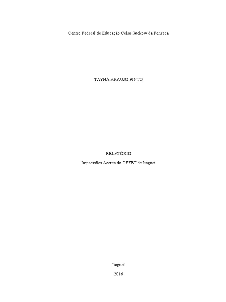 O objetivo deste relatrio apresentar impresses acerca das qualidades do CEFET de