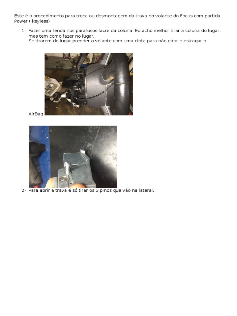 Este o procedimento para troca ou desmontagem da trava do volante do Focus com partida