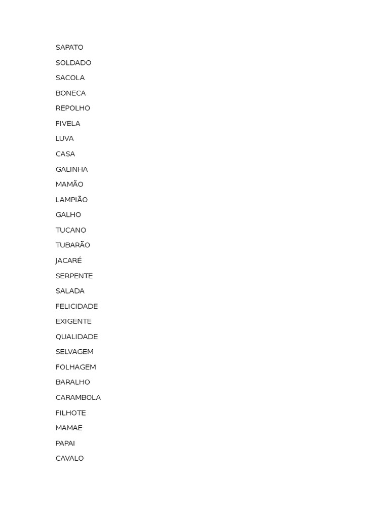 o completem oralmente, com nomes de animais, objetos, frutas, brinquedos que