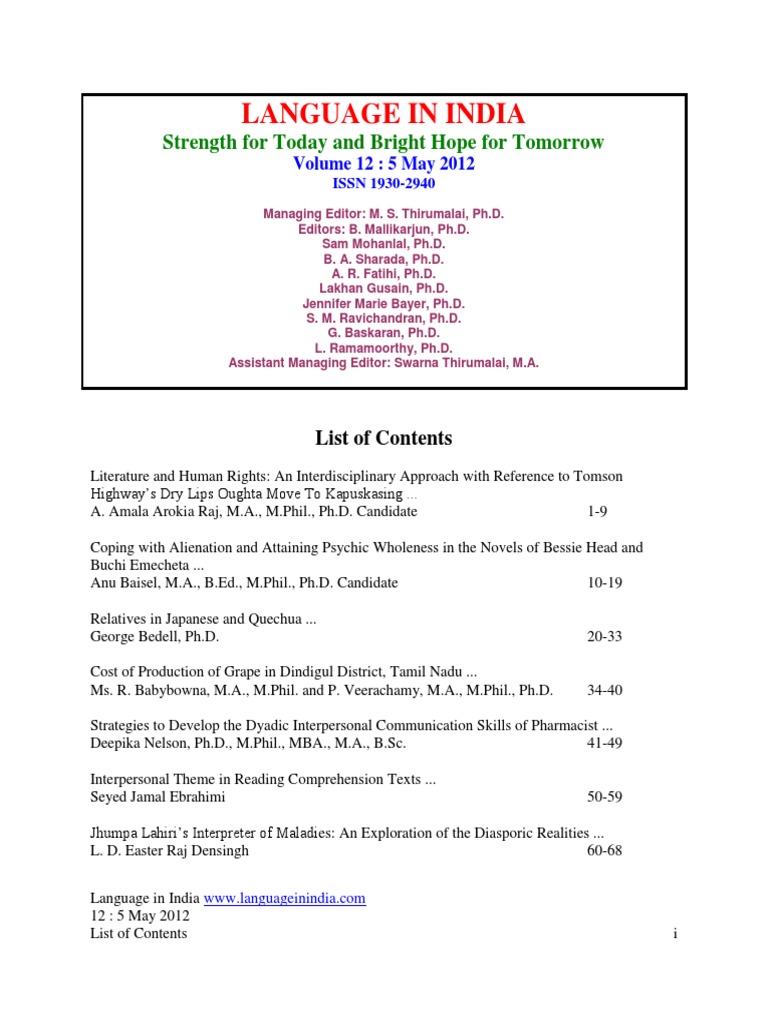 A PRINT VERSION OF ALL THE PAPERS OF MAY, 2012 ISSUE IN BOOK FORMAT.