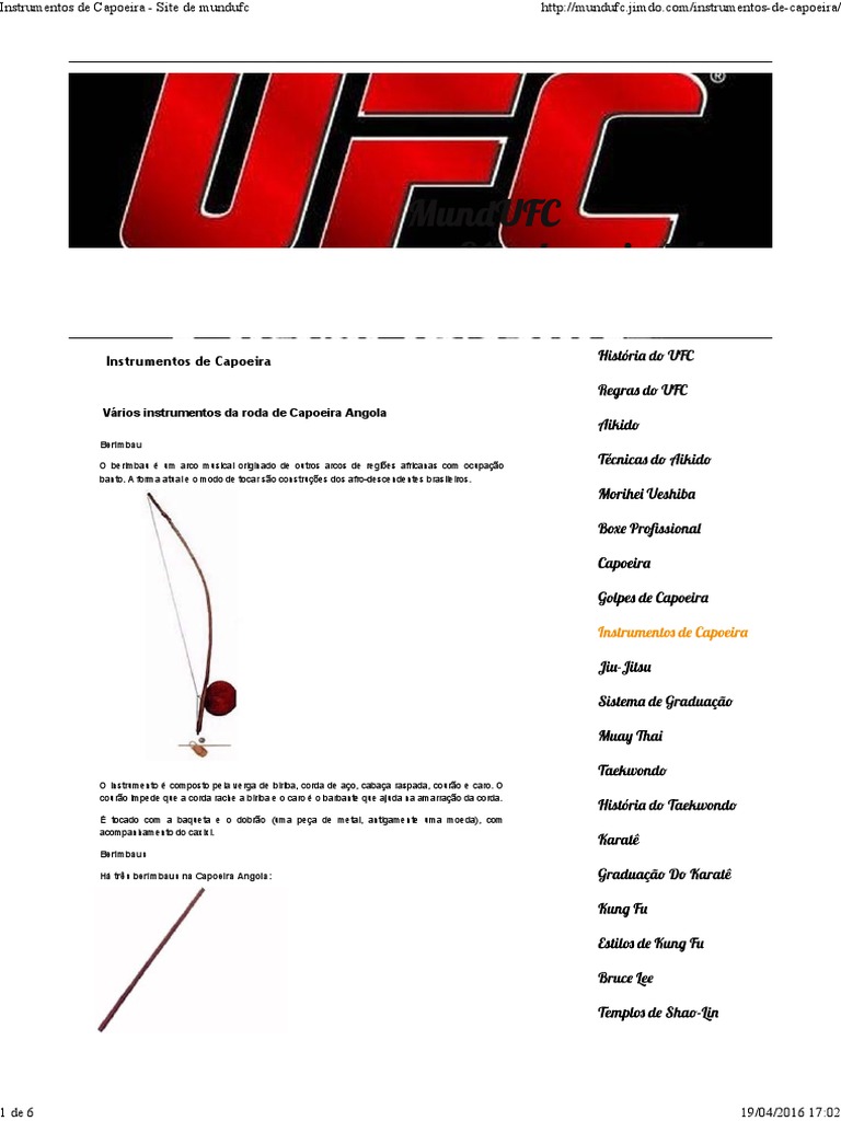 Instrumento cordofono, o principal instrumento da capoeira. Pode at acompanhar sozinho o