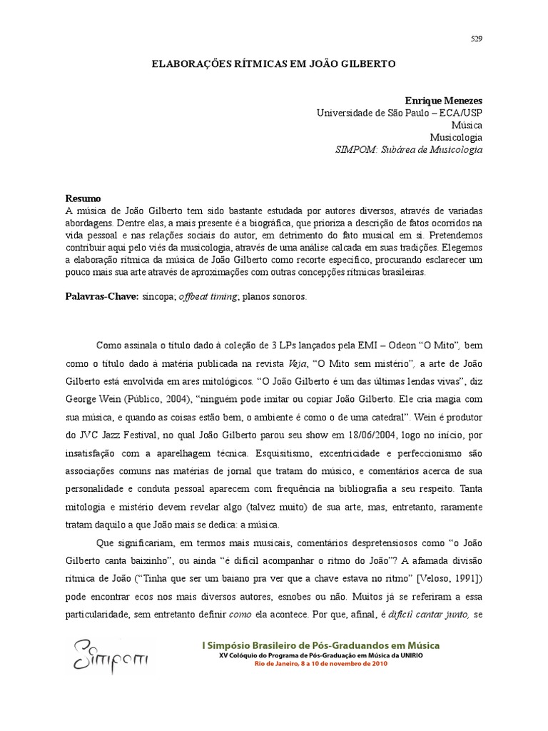 pouco mais sua arte atravs de aproximaes com outras concepes rtmicas brasileiras.
