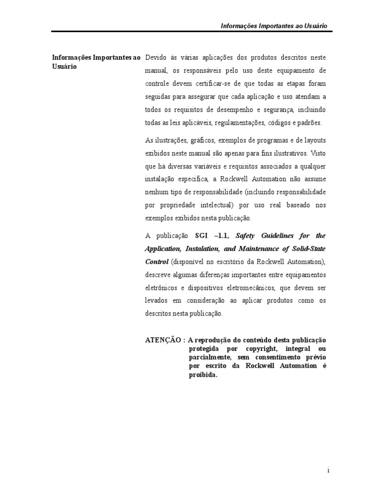 Informaes Importantes ao Devido s vrias aplicaes dos produtos descritos neste