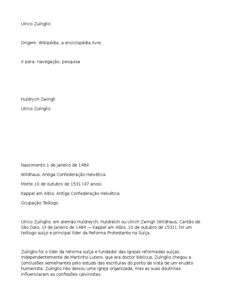 1 Biografia 1.1 Zunglio e Martinho Lutero