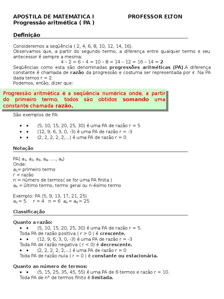 Progresso aritmtica ( PA )