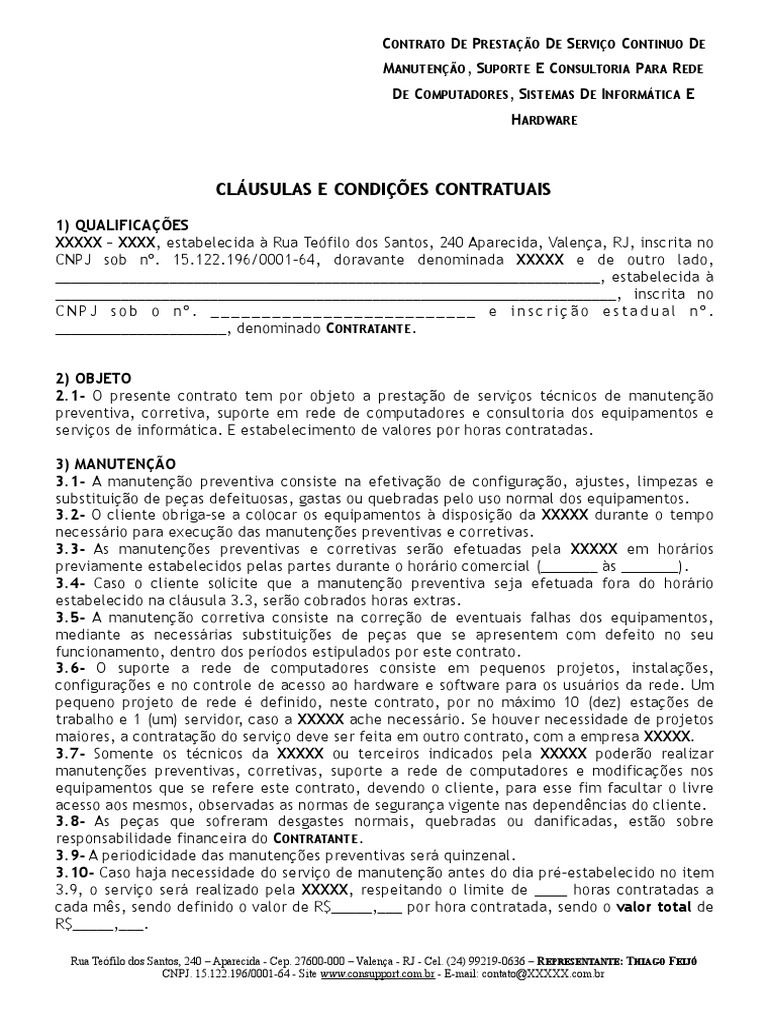 3.2- O cliente obriga-se a colocar os equipamentos disposio da XXXXX durante o tempo