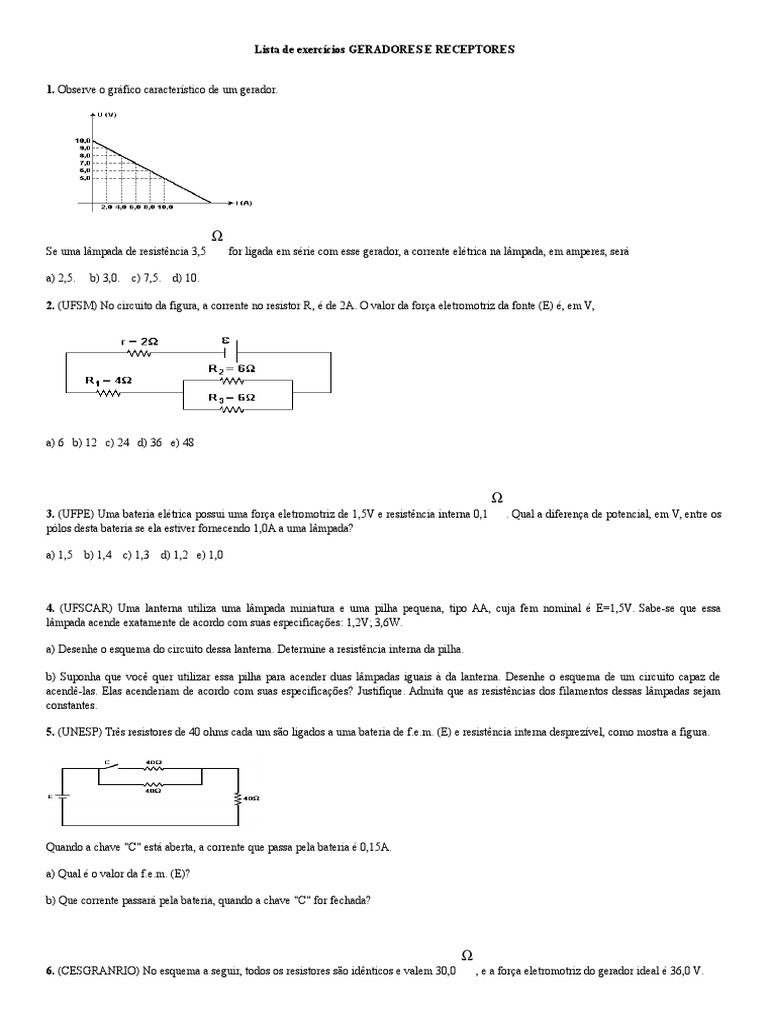Lista de Exercícios Geradores e Receptores