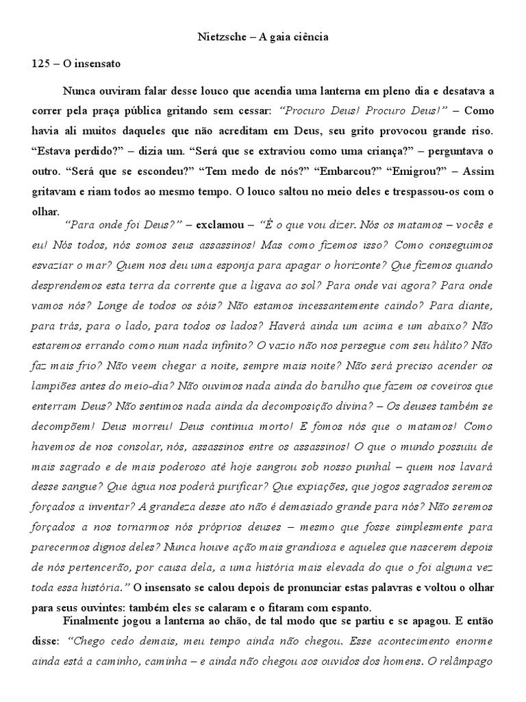 correr pela praa pblica gritando sem cessar: Procuro Deus! Procuro Deus! Como