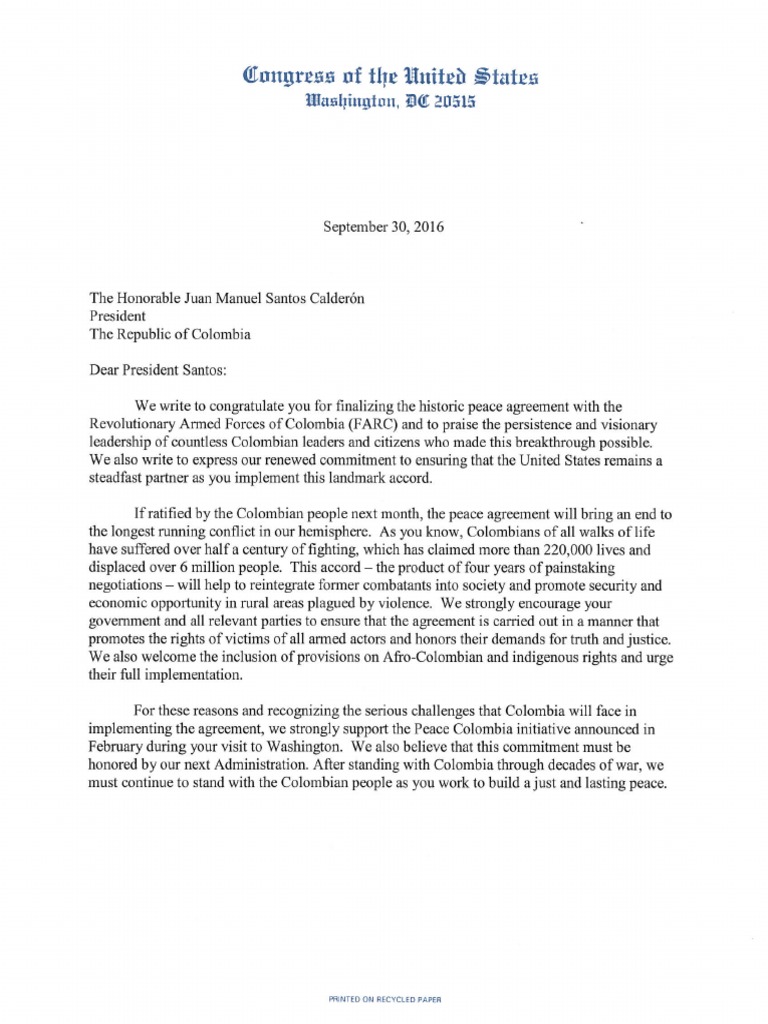 Rep. Ruben Gallego and 62 other Members of Congress sent a letter to Colombian President Juan Manuel Santos to congratulate him for concluding the peace accord with the Revolutionary Armed F…Descrição completa