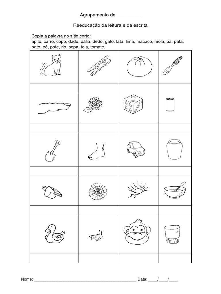 apito, carro, copo, dado, dlia, dedo, gato, lata, lima, macaco, mola, p, pata,