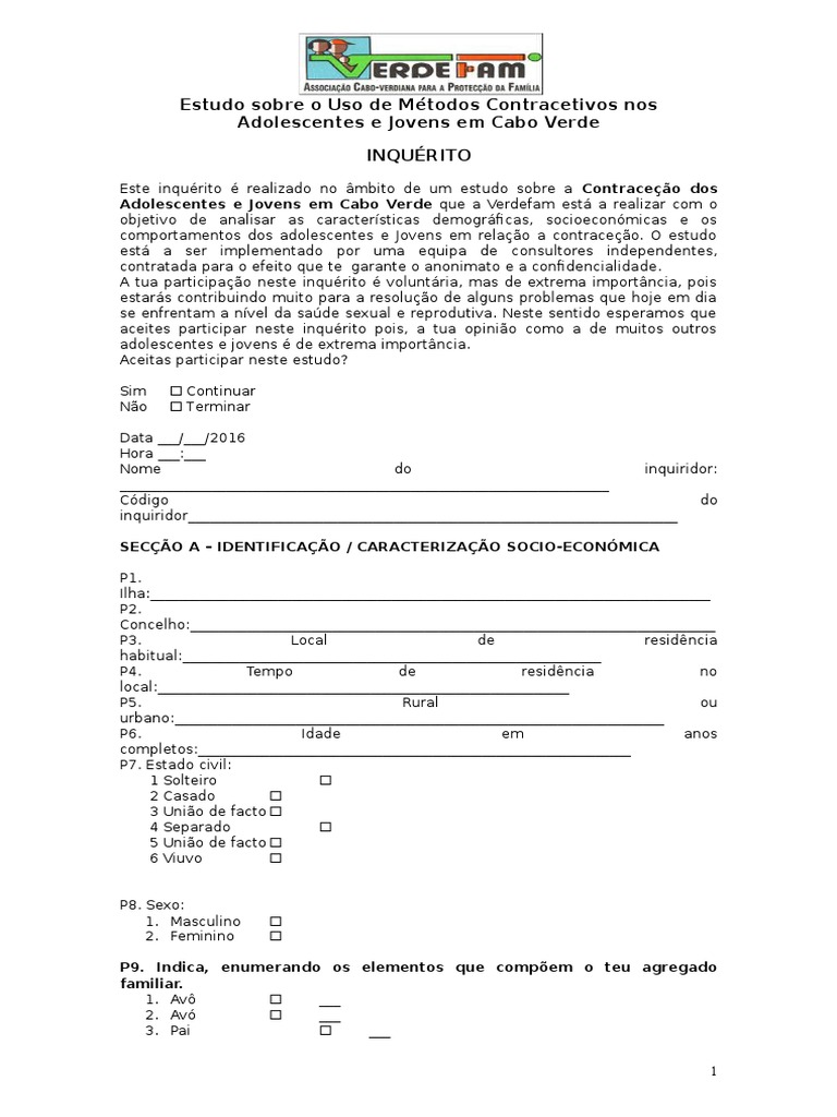 Este inqurito realizado no mbito de um estudo sobre a Contraceo dos
