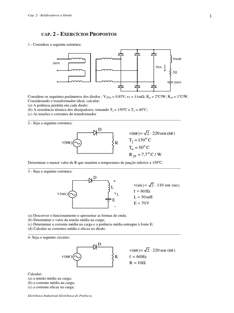 (d) Calcular as correntes mdia e eficaz no diodo.