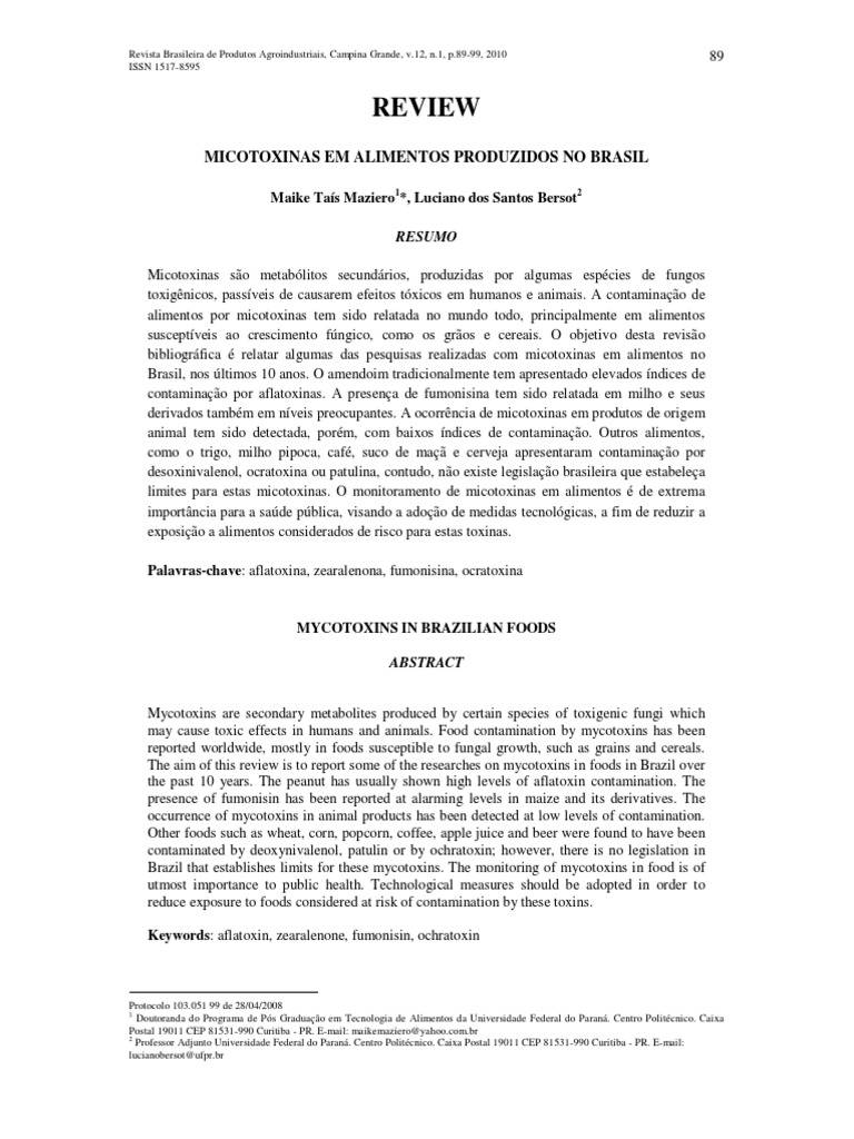 Brazil that establishes limits for these mycotoxins. The monitoring of mycotoxins in food is of