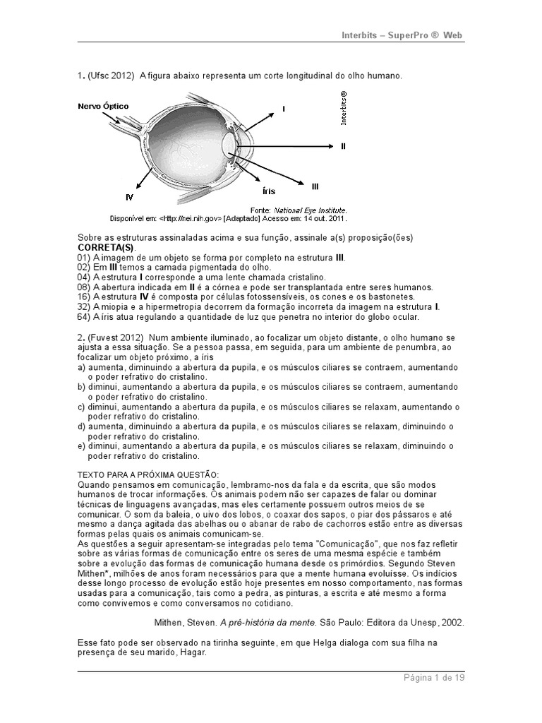1. (Ufsc 2012) A figura abaixo representa um corte longitudinal do olho humano.