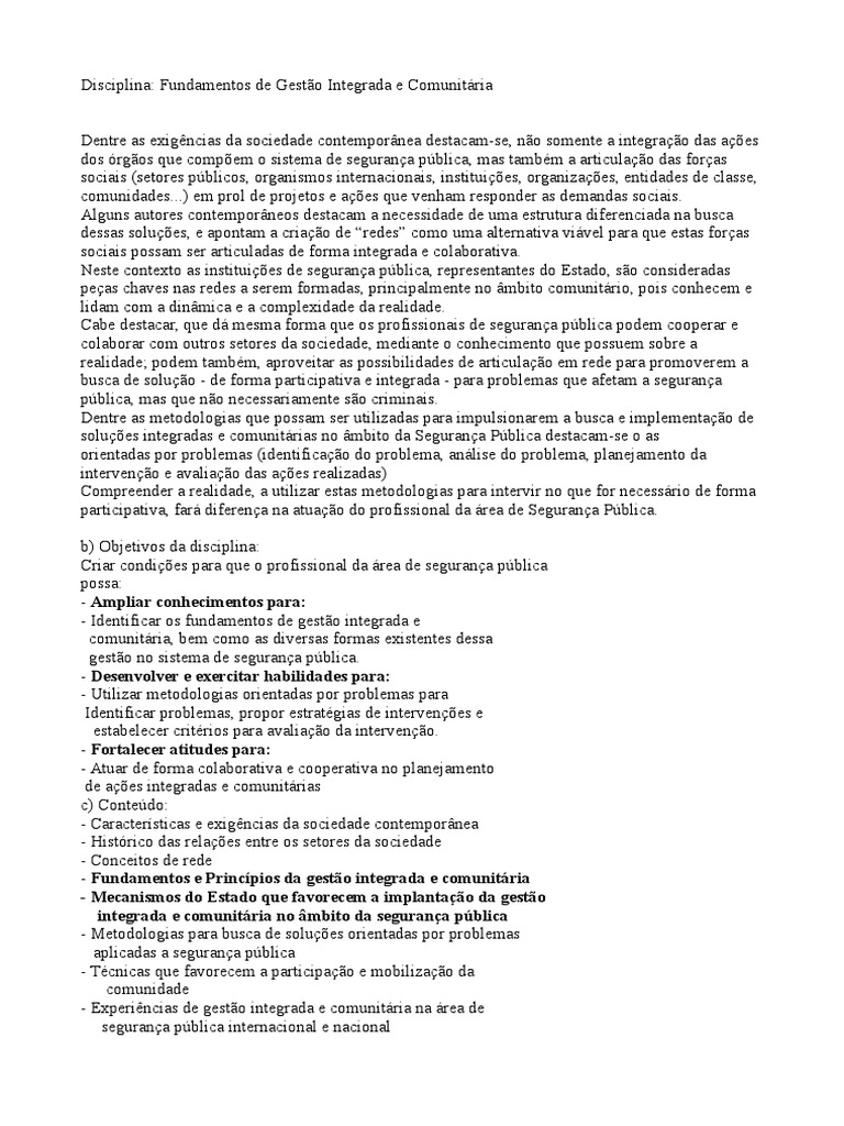 Disciplina: Fundamentos de Gesto Integrada e Comunitria