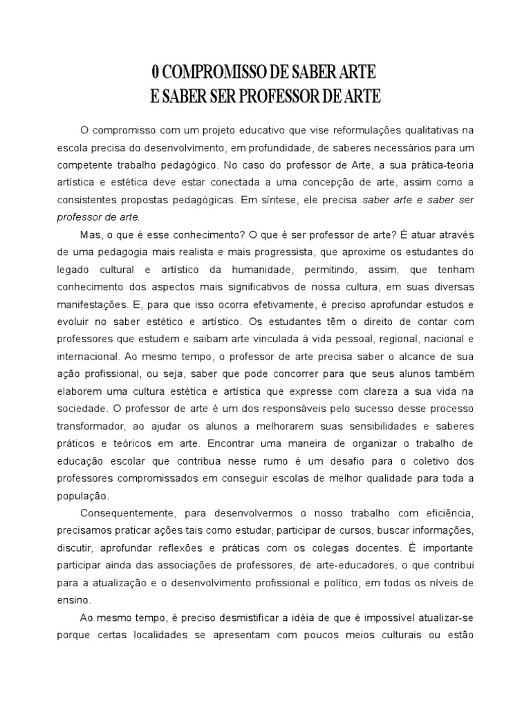consistentes propostas pedaggicas. Em sntese, ele precisa saber arte e saber ser