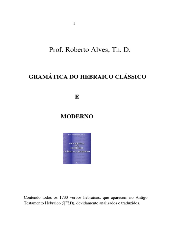 Espero que este trabalho contribua grandemente para a erradicao do analfabetismo da lngua original do Antigo Testamento que grassa no meio