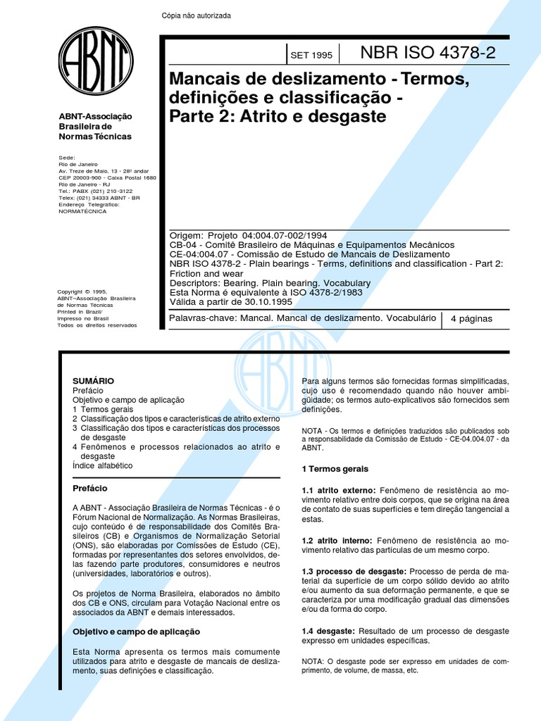 NBR 04378 - Mancais de Deslizamento - Termos Definicoes e Classificacao - Parte 2 Atrito e Desgas