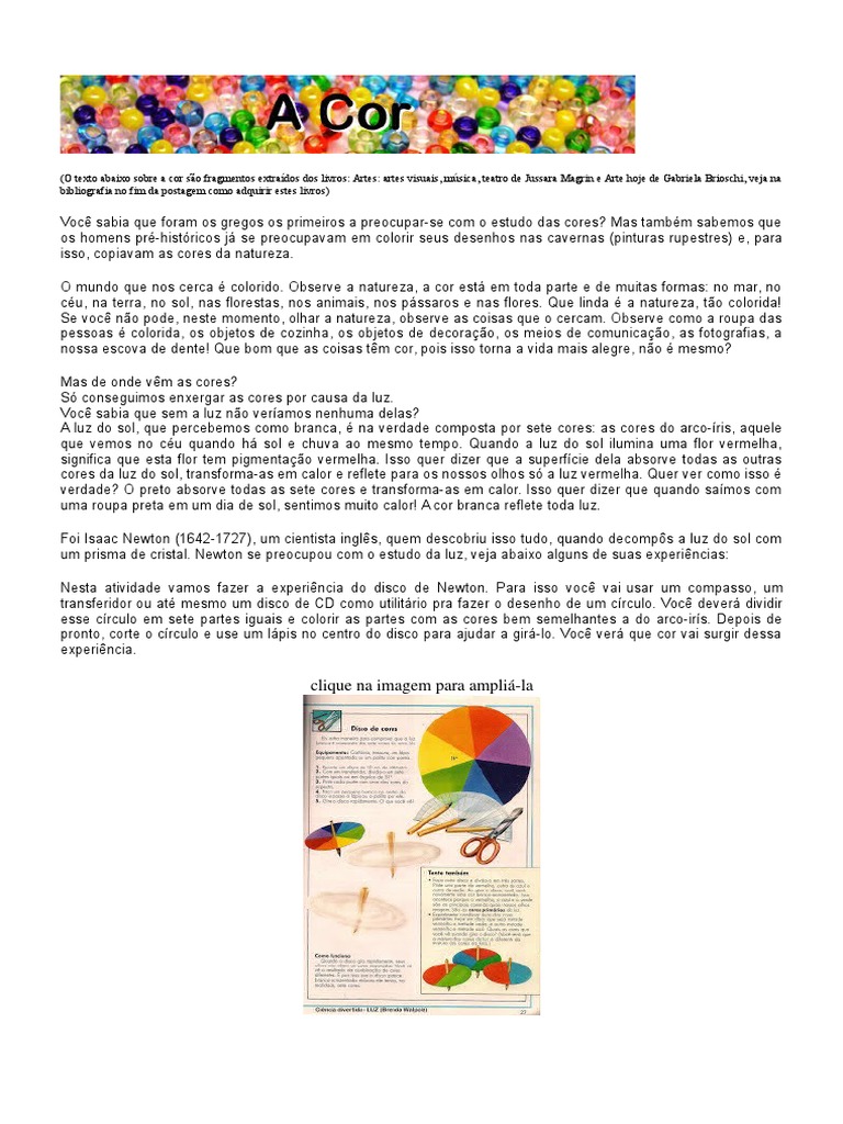 (O texto abaixo sobre a cor so fragmentos extrados dos livros: Artes: artes visuais, msica, teatro de Jussara Magrin