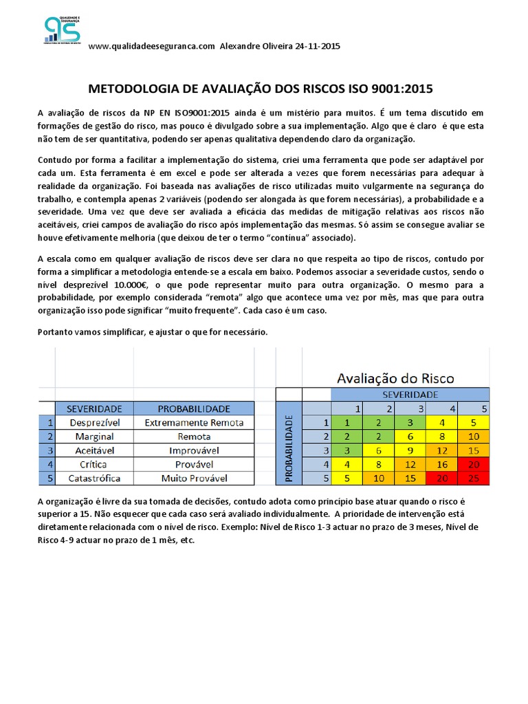 METODOLOGIA DE AVALIAO DOS RISCOS ISO 9001:2015