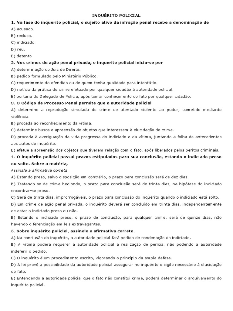 5. Sobre inqurito policial, assinale a afirmativa correta.