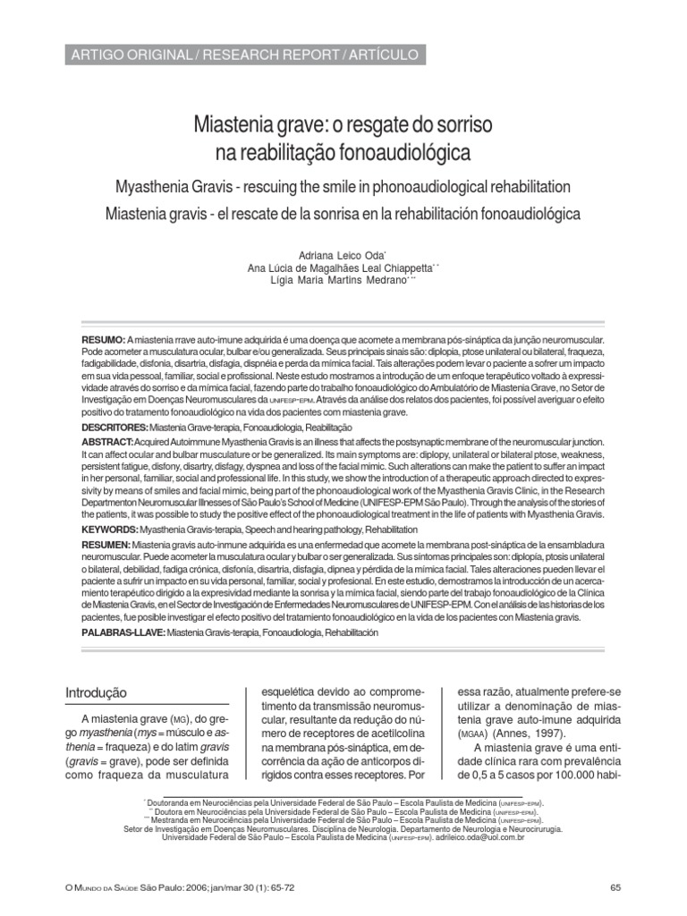 Miastenia gravis - el rescate de la sonrisa en la rehabilitacin fonoaudiolgica