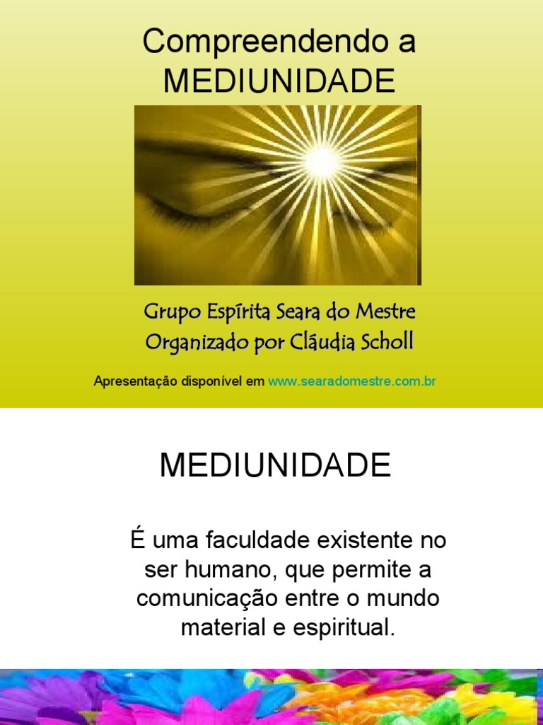 à luz do conhecimento espírita. . etc. entender o desdobramento. Técnica Exercício prático. como concentrar ou desconcentrar. . controlar-se nas manifestações e analisar o resultado delas. para que o médium saiba distinguir os tipos de Espíritos pelos seus fluidos.