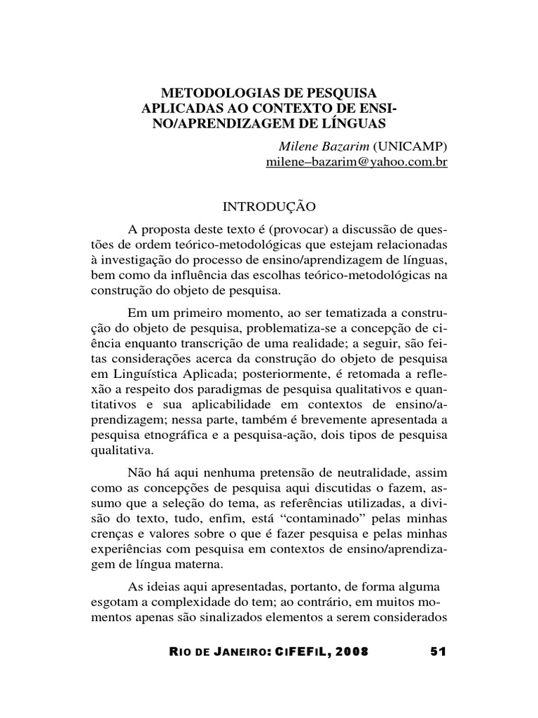 ensino/aprendizagem de lnguas. Minha inteno era defender