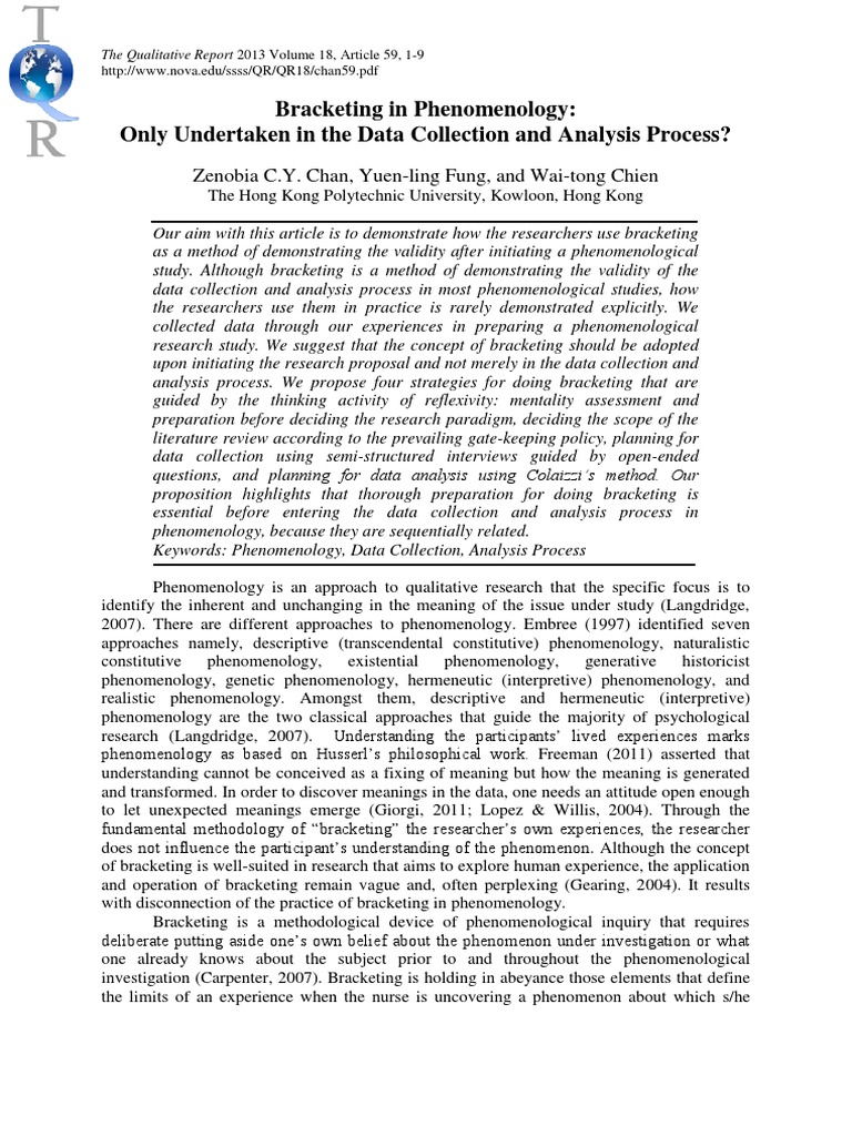 the research process. Thorough planning for doing bracketing in the phenomenology study is