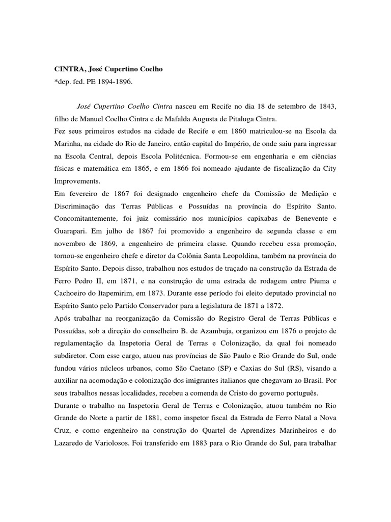 Jos Cupertino Coelho Cintra nasceu em Recife no dia 18 de setembro de 1843,