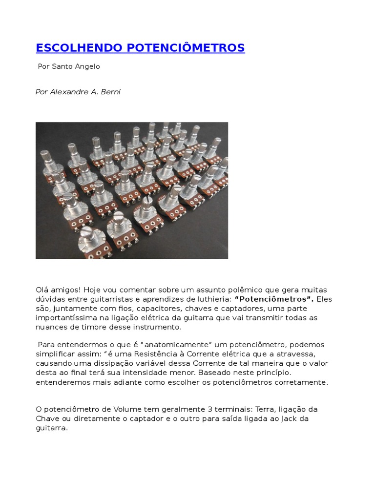 dvidas entre guitarristas e aprendizes de luthieria: Potencimetros. Eles