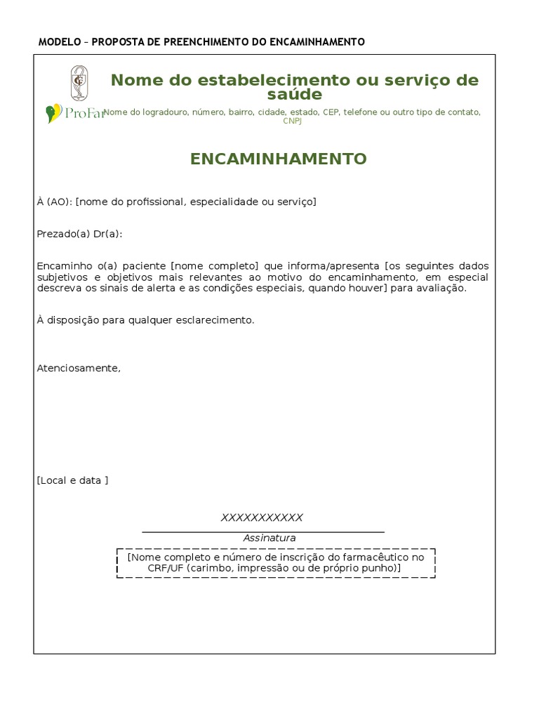 MODELO PROPOSTA DE PREENCHIMENTO DO ENCAMINHAMENTO
