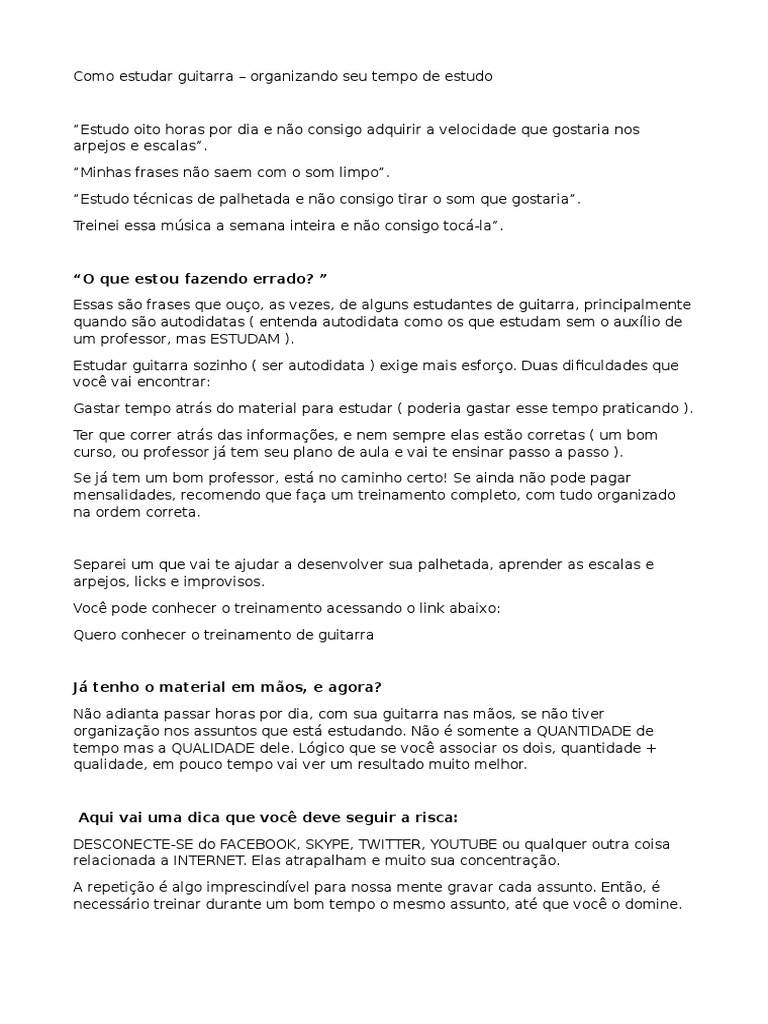 CRONOGRAMA DE ESTUDO PARA GUITARRA