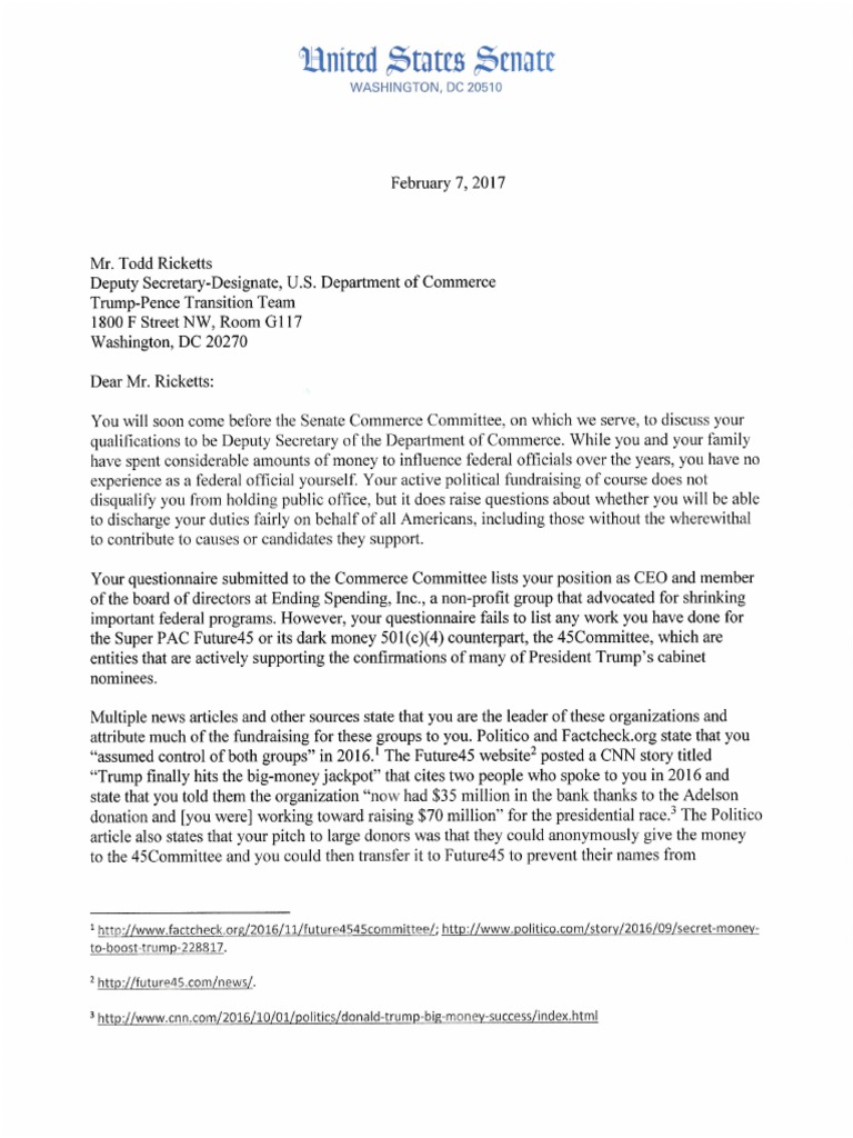 Democratic Senators Raise Questions on Todd Ricketts’ Super PAC and Dark Money Fundraising Activities