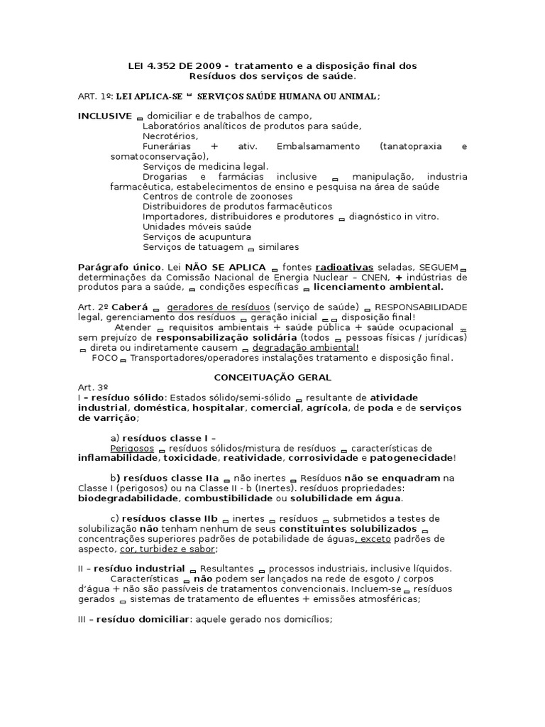 352 DE 2009 - tratamento e a disposio final dos