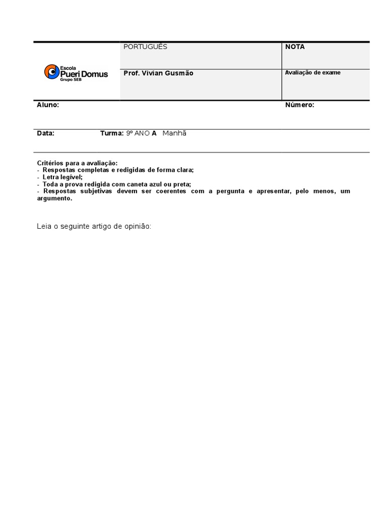 Leia o seguinte artigo de opinio: