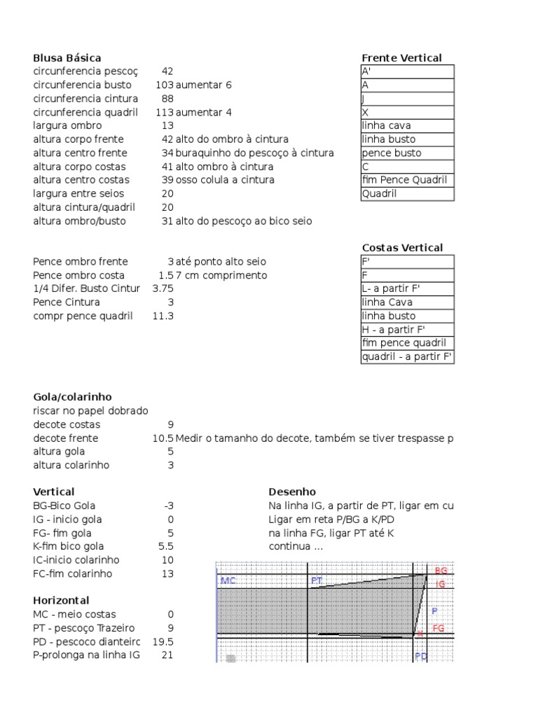 altura centro frente 34 buraquinho do pescoo cintura pence busto