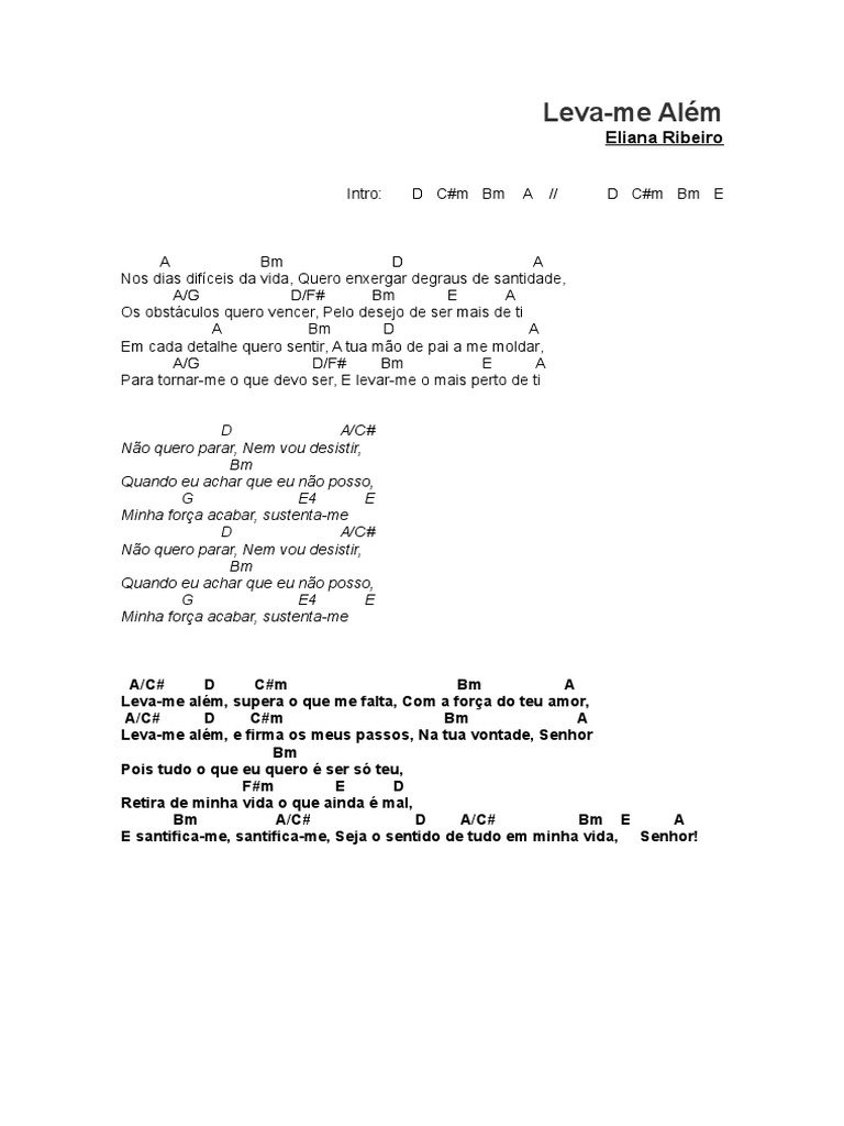 Leva-me alm, supera o que me falta, Com a fora do teu amor,
