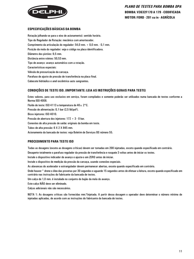 Estes valores, para uso exclusivo em servio, foram compilados e somente podero ser utilizados numa bancada de testes conforme a