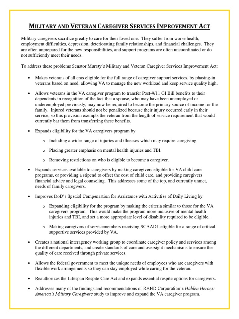 The Military and Veteran Caregiver Services Improvement Act would open the program to veterans of all eras, making resources available to more of the family members and other loved ones who …Descrição completa