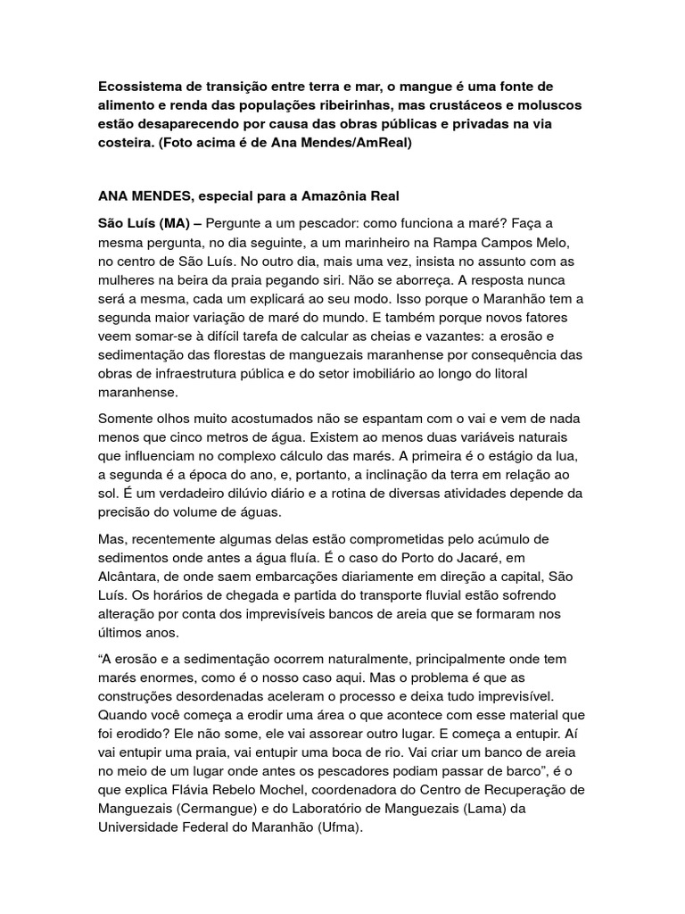 sedimentao das florestas de manguezais maranhense por consequncia das