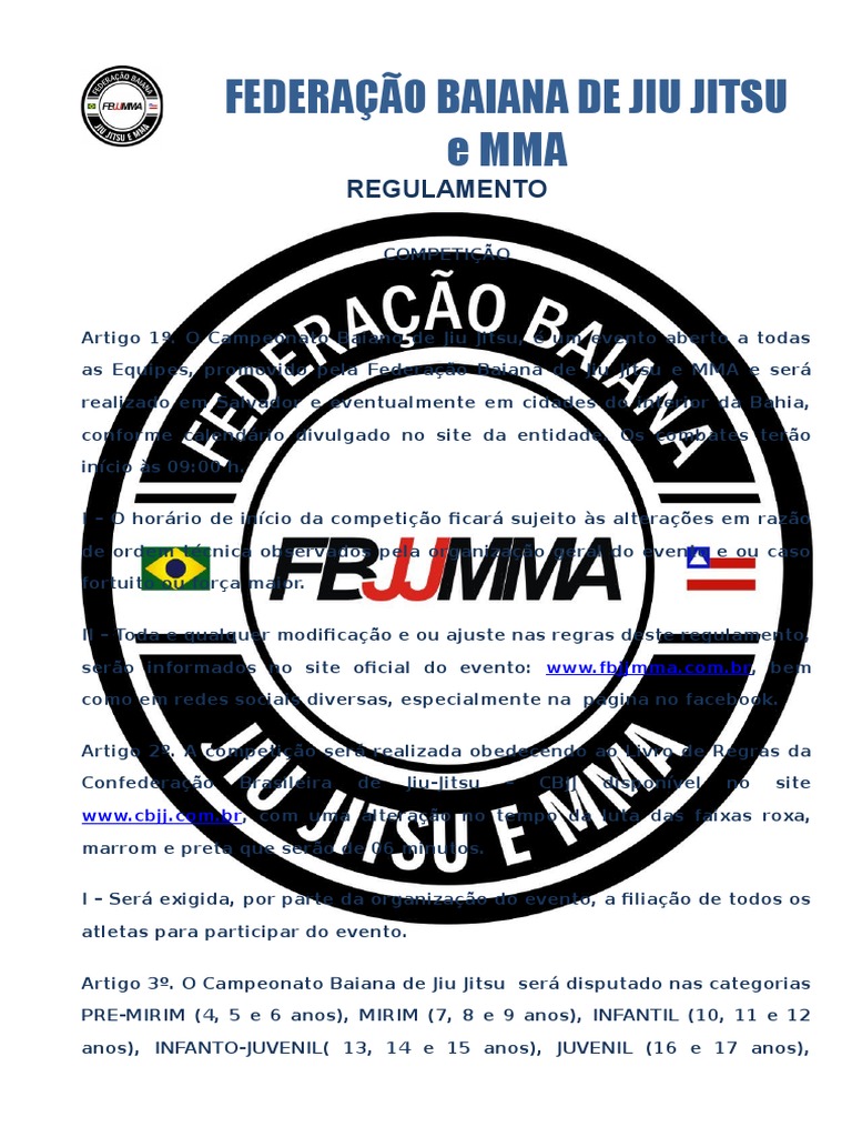 Artigo 3. O Campeonato Baiana de Jiu Jitsu ser disputado nas categorias