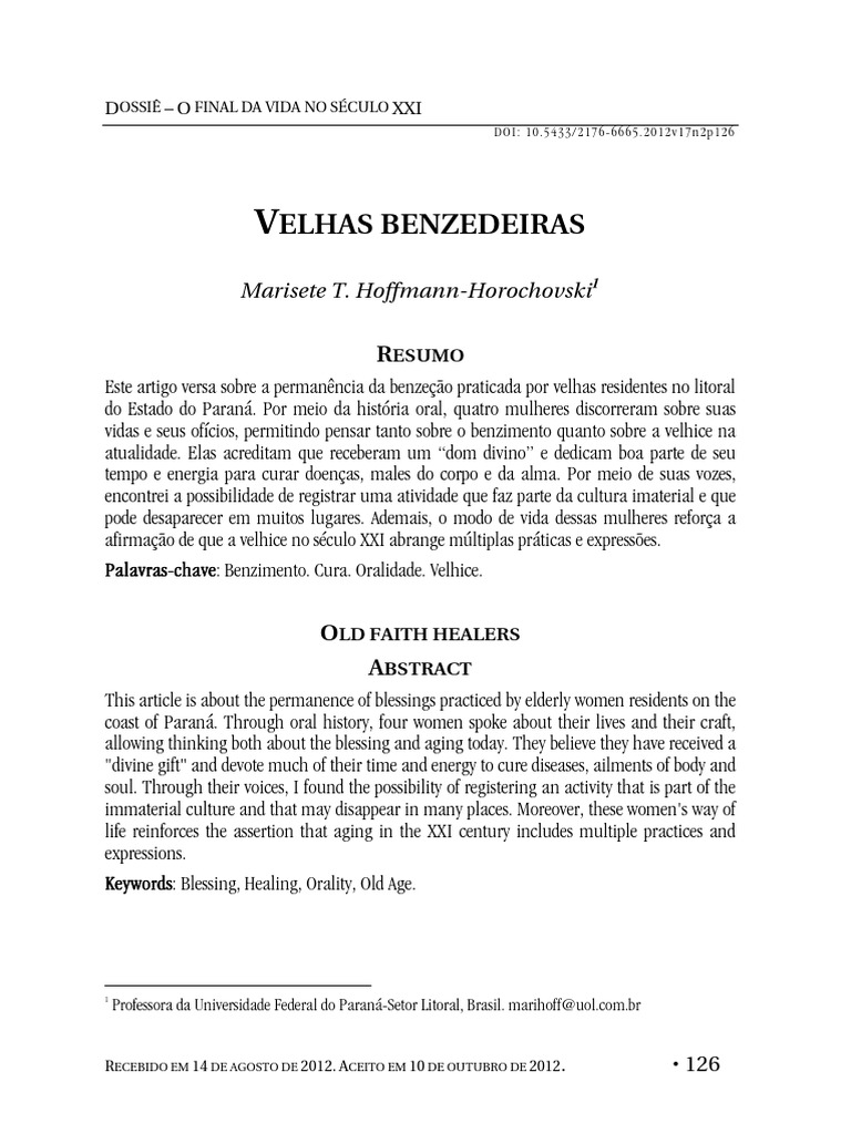indagaes motivaram uma pesquisa sobre velhas benzedeiras e suscitaram as reflexes