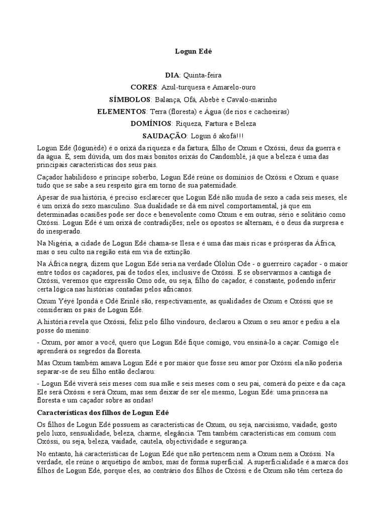 No entanto, h caractersticas de Logun Ed que no pertencem nem a Oxum nem a Oxssi. Na