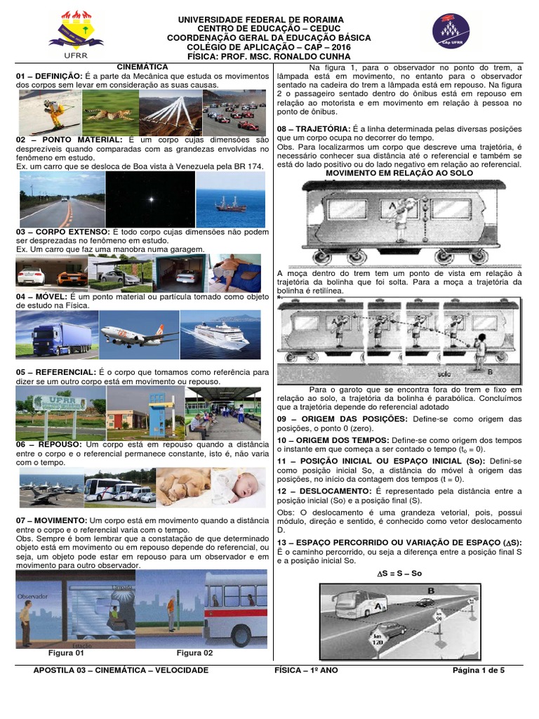 APOSTILA 03 CINEMTICA VELOCIDADE FSICA 1 ANO Pgina 1 de 5