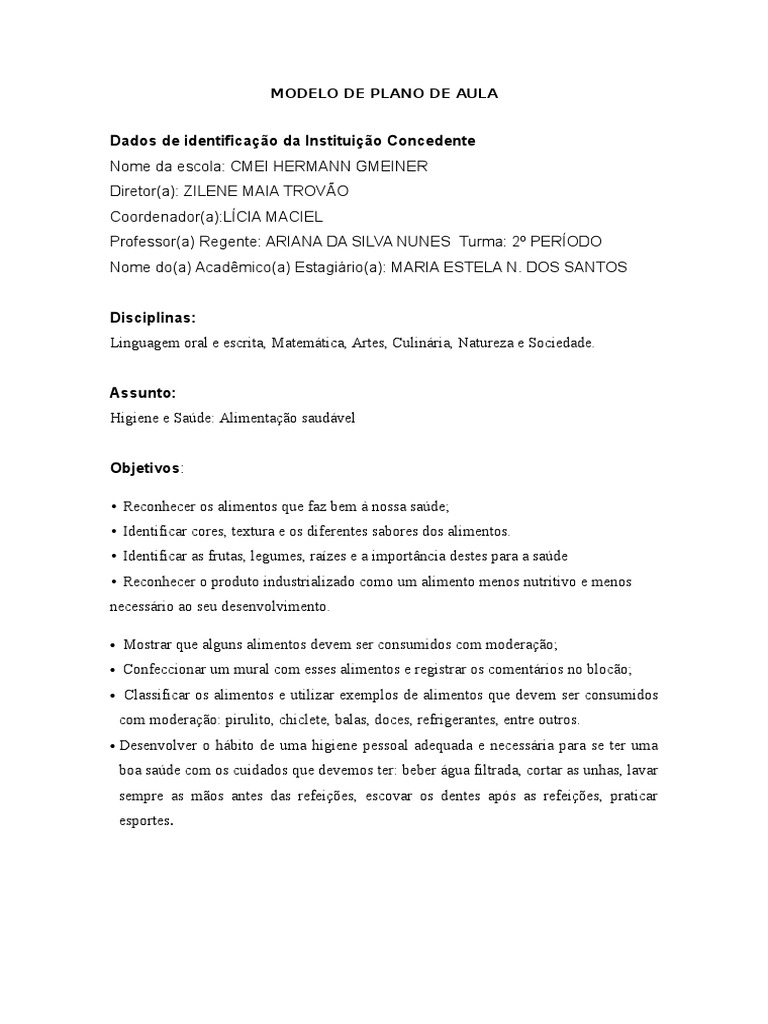 Nome do(a) Acadmico(a) Estagirio(a): MARIA ESTELA N. DOS SANTOS