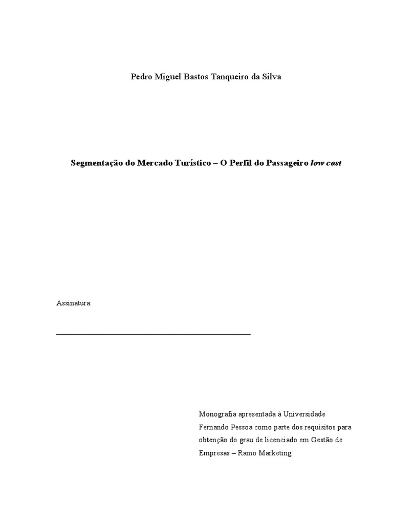 O objectivo principal deste estudo a determinao do perfil do passageiro low cost. Assim,