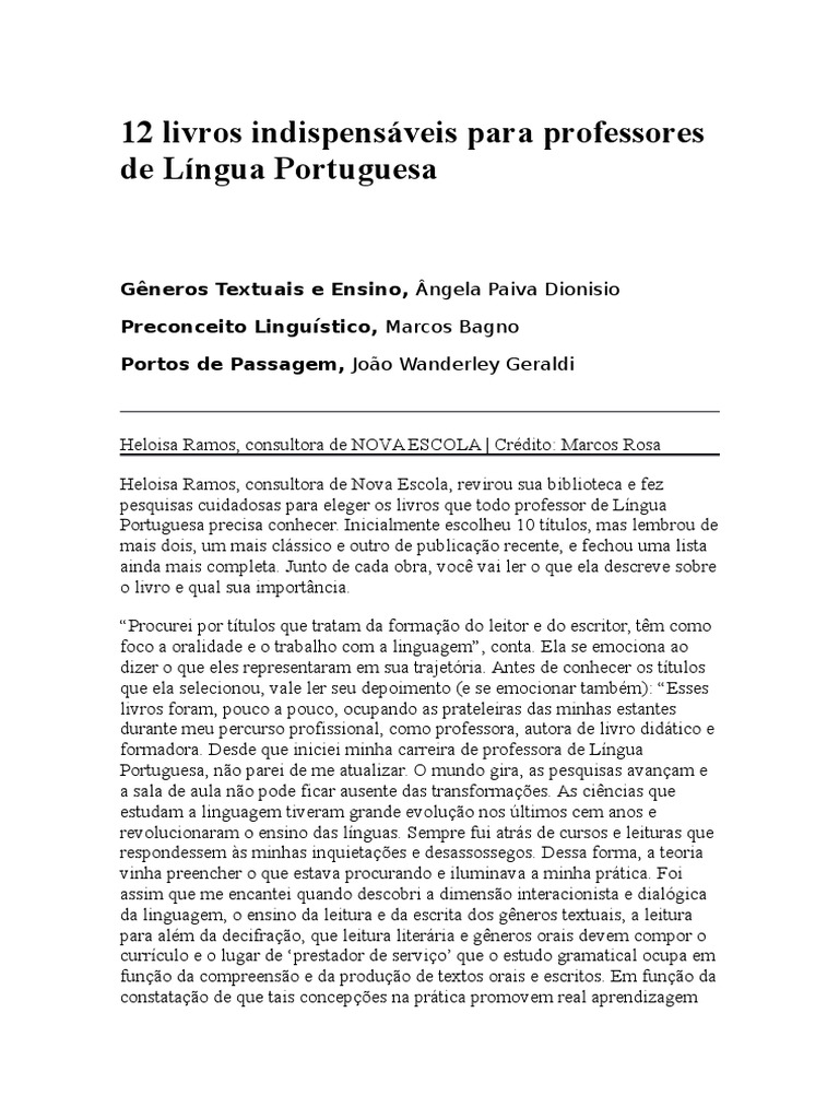 pesquisas cuidadosas para eleger os livros que todo professor de Língua
