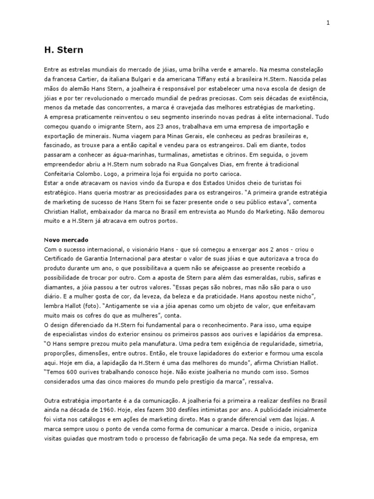 de marketing de sucesso de Hans Stern foi se fazer presente onde o seu pblico estava, comenta